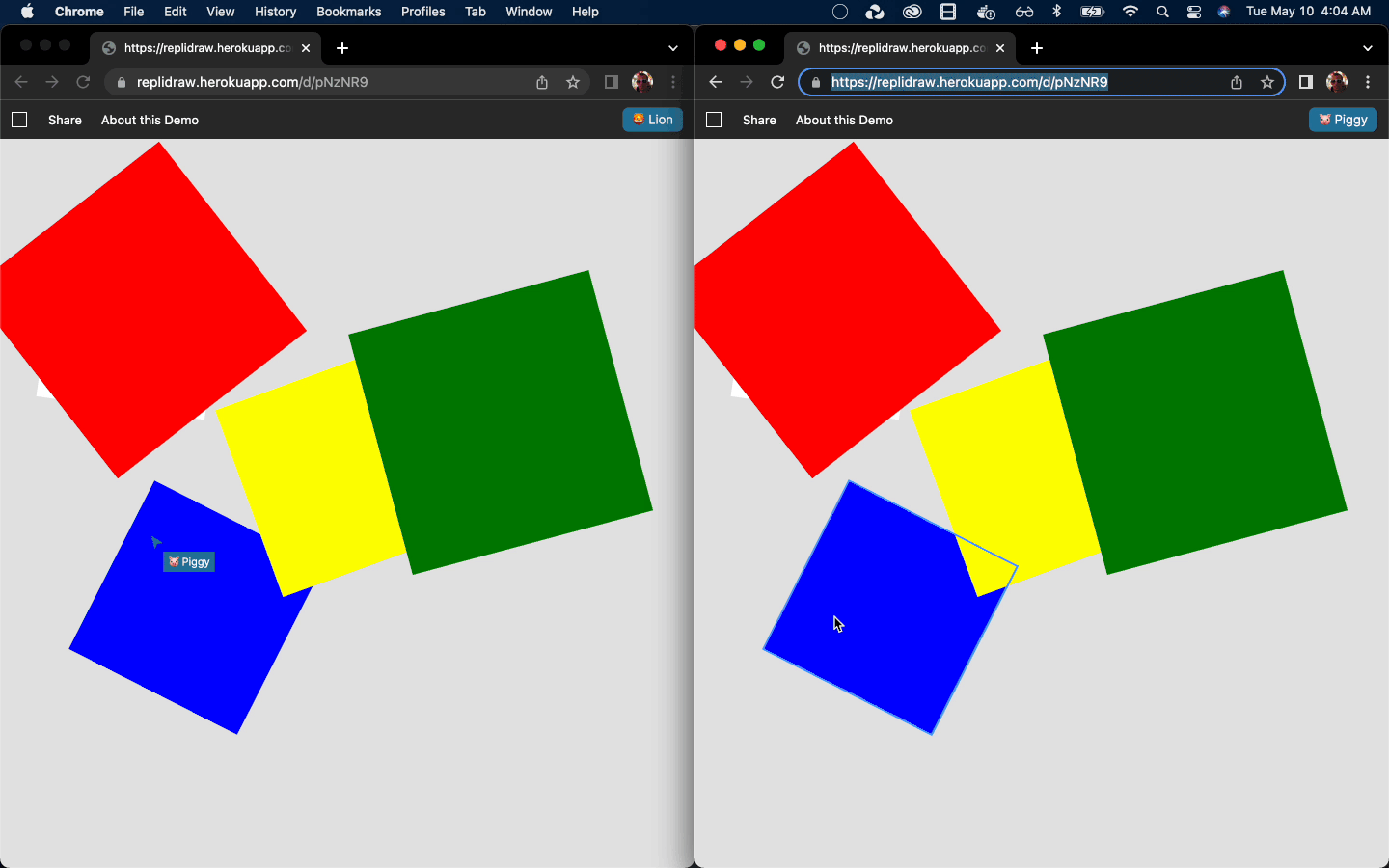 Running live at https://replidraw.herokuapp.com/. To see realtime changes in action, click the link, copy the resulting URL, open a second browser window to it, and watch changes you make in one window sync to the other.